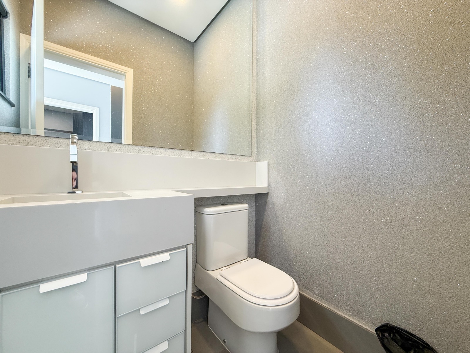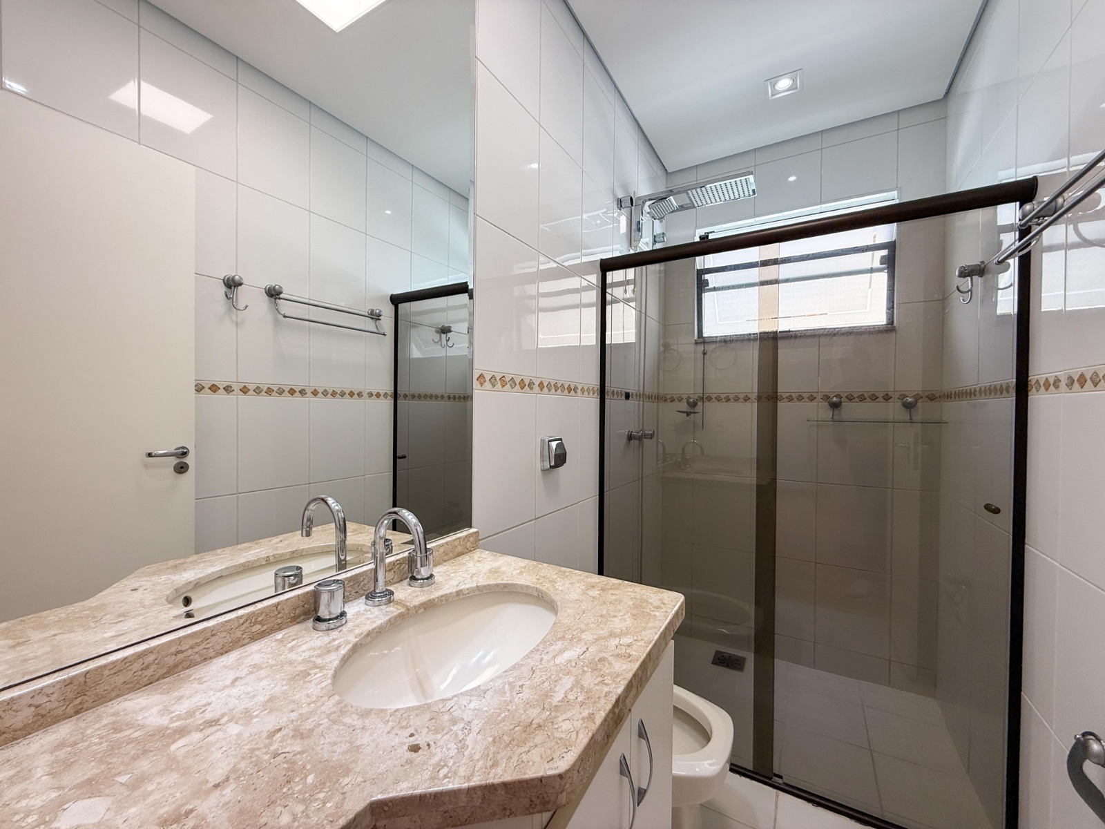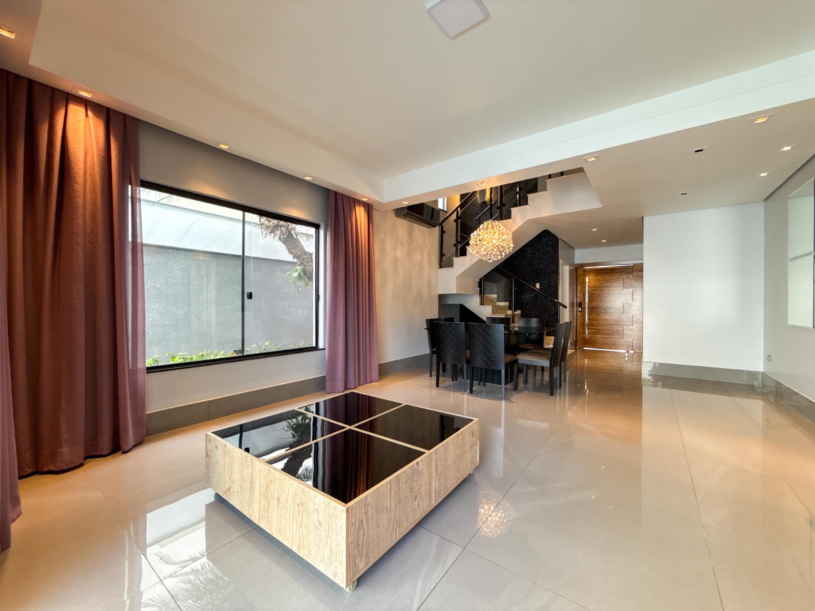 O imóvel conta com 3 suítes amplas, todas com armários modulados, ar-condicionado e sacada, garantindo conforto e privacidade. A área social impressiona com sala de estar e jantar com pé-direito duplo, acabamento em porcelanato e climatização, proporcionando elegância e ótima iluminação natural.